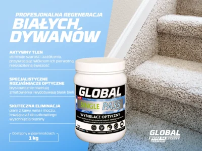 W przypadku tłustych zabrudzeń organicznych i białkowych zaleca się zastosowanie środka enzymatycznego (np. Global Enzym), a następnie płukanie ekstrakcyjne detergentem Single Pass S103.