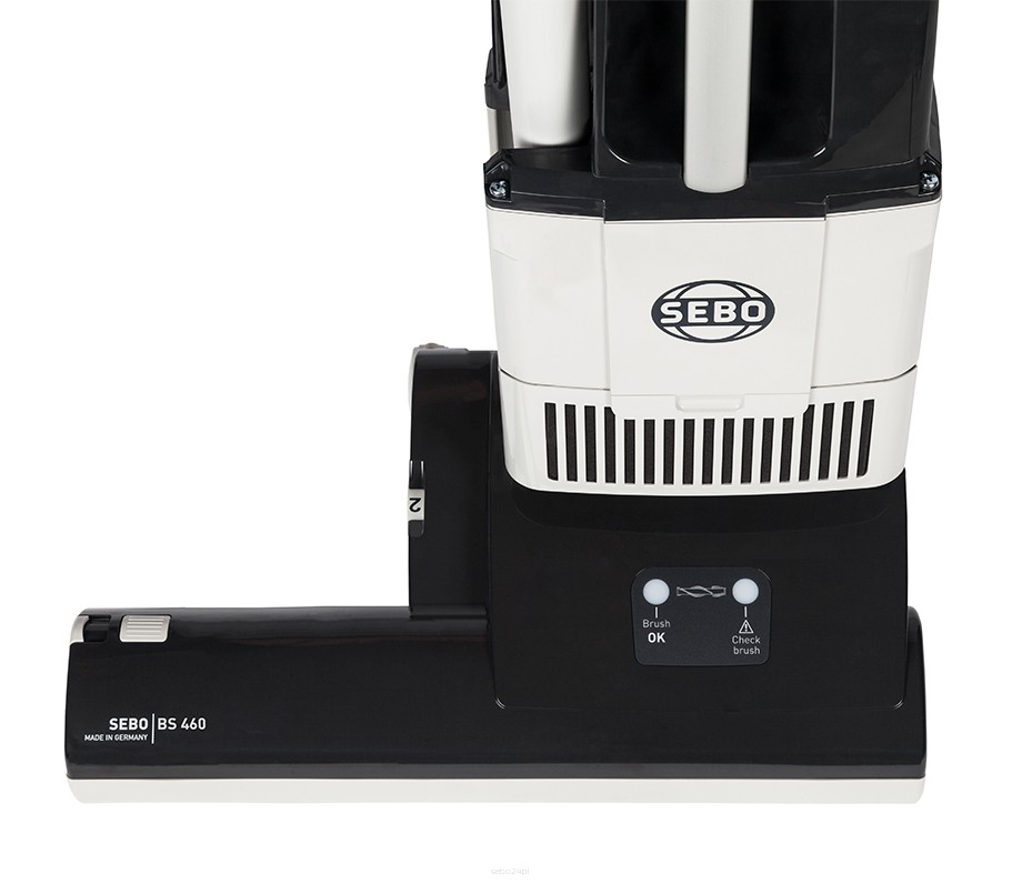 Odkurzacz szczotkowy SEBO BS 360/460 kontynuuje długą i udaną tradycję odkurzania szczotkowego z dwoma silnikami. Sprawdzone funkcje takie jak nowoczesna szczotka dywanowa COMFORT z czterema kółkami w kształcie litery „L”, praktyczna zintegrowana rura ssąca z wężem teleskopowym oraz możliwość odchylenia kolumny odkurzacza o 180° umożliwiają profesjonalne czyszczenie dywanów i wykładzin nawet pod meblami, przy krawędziach, pod kaloryferami oraz czyszczenie innych trudno dostępnych miejsc. W przypadku rozpoczęcia pracy z rurą teleskopową lub kiedy dojdzie do blokady szczotek, silnik elektroszczotki wyłącza się automatycznie.